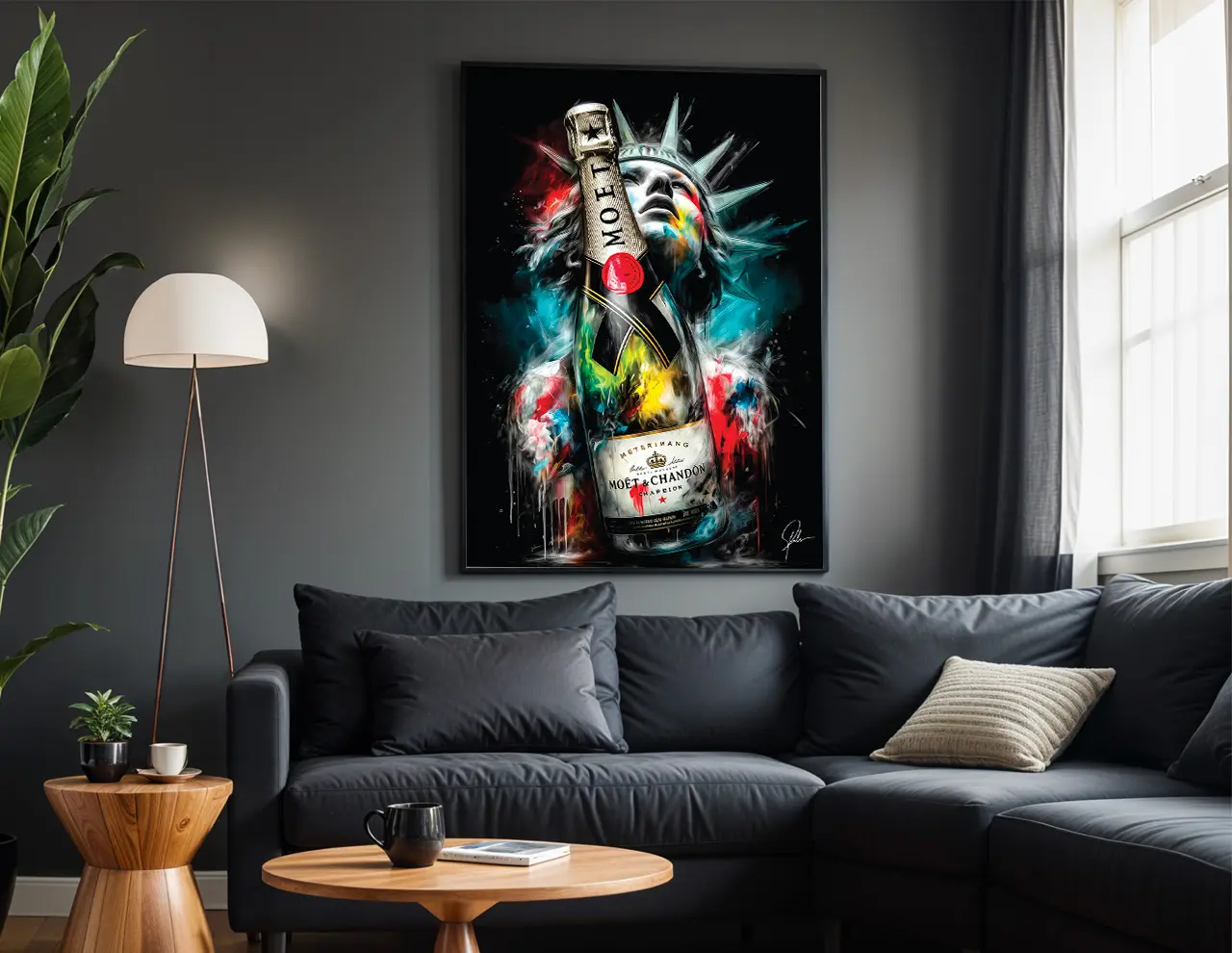 La Statue de la Liberté se pare ici des éclats colorés de mon univers et d’une touche de champagne Moët & Chandon, symbole d’élégance et de célébration.