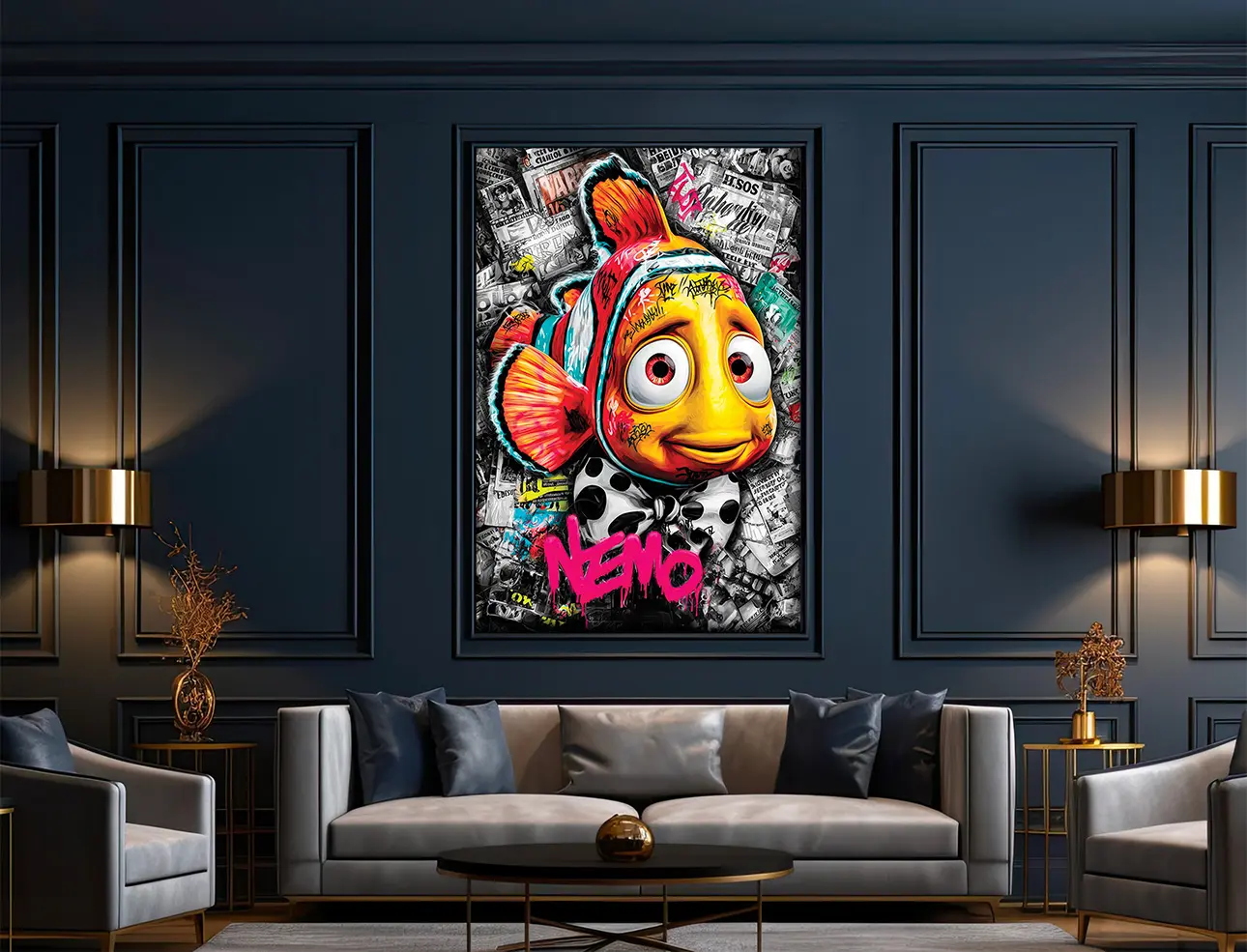 Ici, Nemo sort du récif pour plonger dans un océan urbain saturé de graffitis, de couleurs explosives et de clins d’œil à la culture pop.